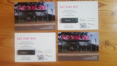 Vom 26. bis 30.10.2020 haben wir mit den Schüler*innen der Evangelischen Grundschule Benz einen Kurzfilm zum Thema "Frieden fängt zuhause an" gedreht. Leider konnte eine gemeinsame Vorführung pandemiebedingt bisher nicht stattfinden, daher haben wir den Filmemacher*innen ihren Film auf USB-Stick mit eigenem Flyer postalisch zugesendet.